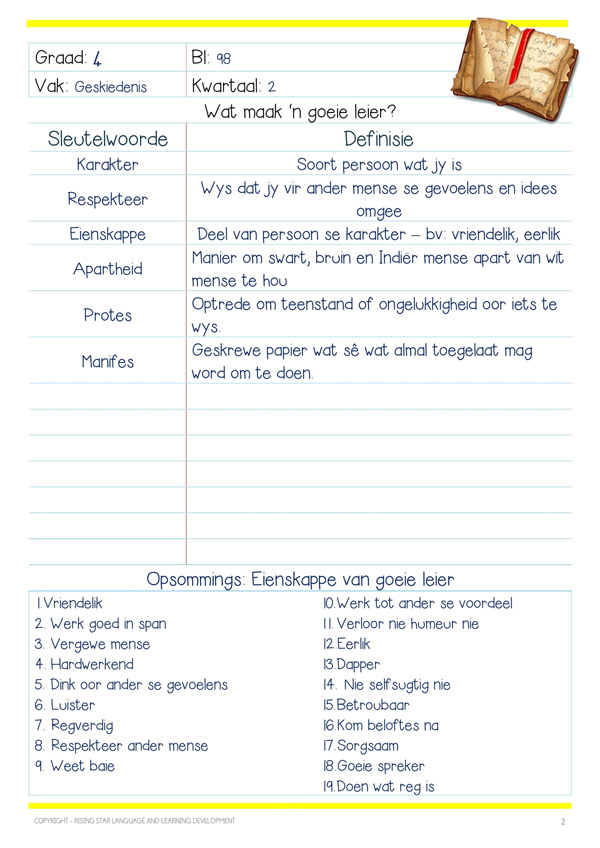 Graad 4: Kwartaal 2 – Geskiedenis Opsommings