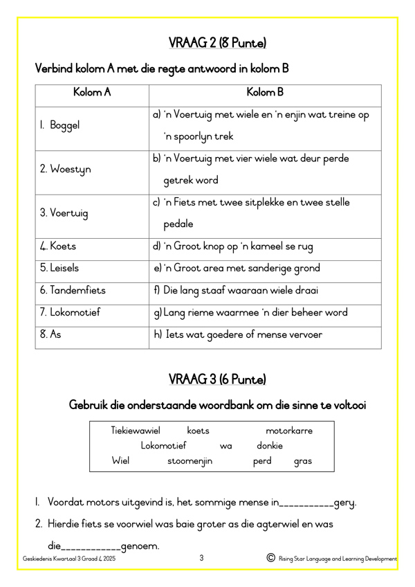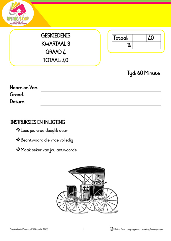 Graad 4: Kwartaal 3 - Geskiedenis Toets en Memo quantity