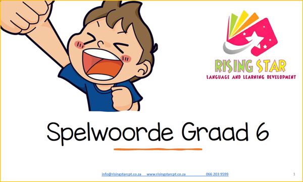Vinnige en maklike manier om spelwoorde te leer. Kan vir ander grade ook gebruik word.