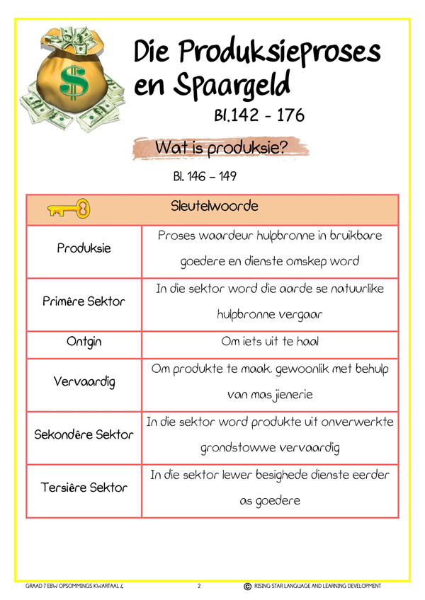 Graad 7 Ekonomiese en Bestuurswetenskappe Opsommings (Vandag Handboek)