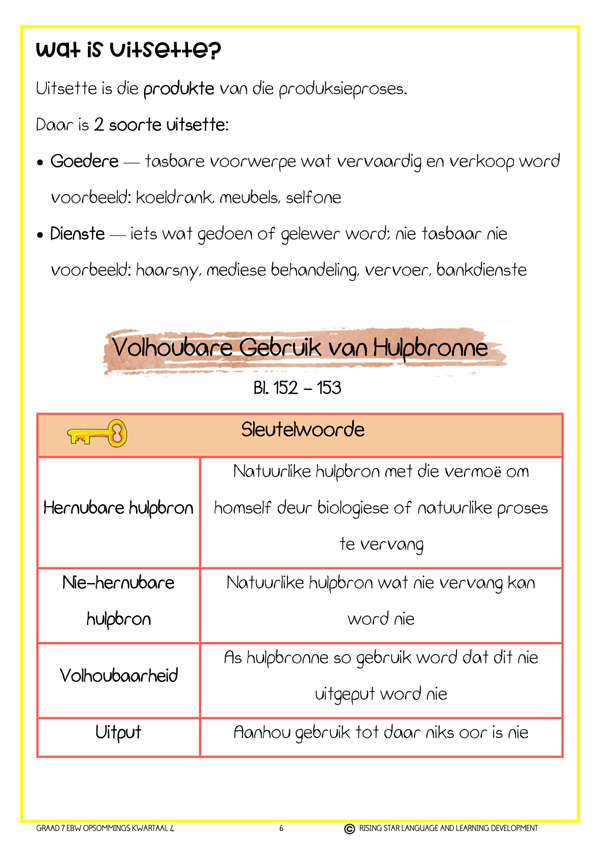Graad 7 Ekonomiese en Bestuurswetenskappe Opsommings (Vandag Handboek) quantity
